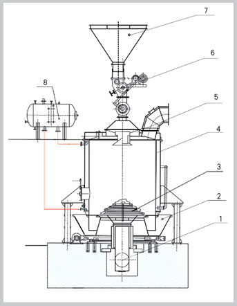 1、Three terminal blast line 2、Ash tray and transmission 3、Body wall 4、Gasifier body 5、Gasifier roof 6、Equipment of adding coal 7、Bunker 8、Steam drum
